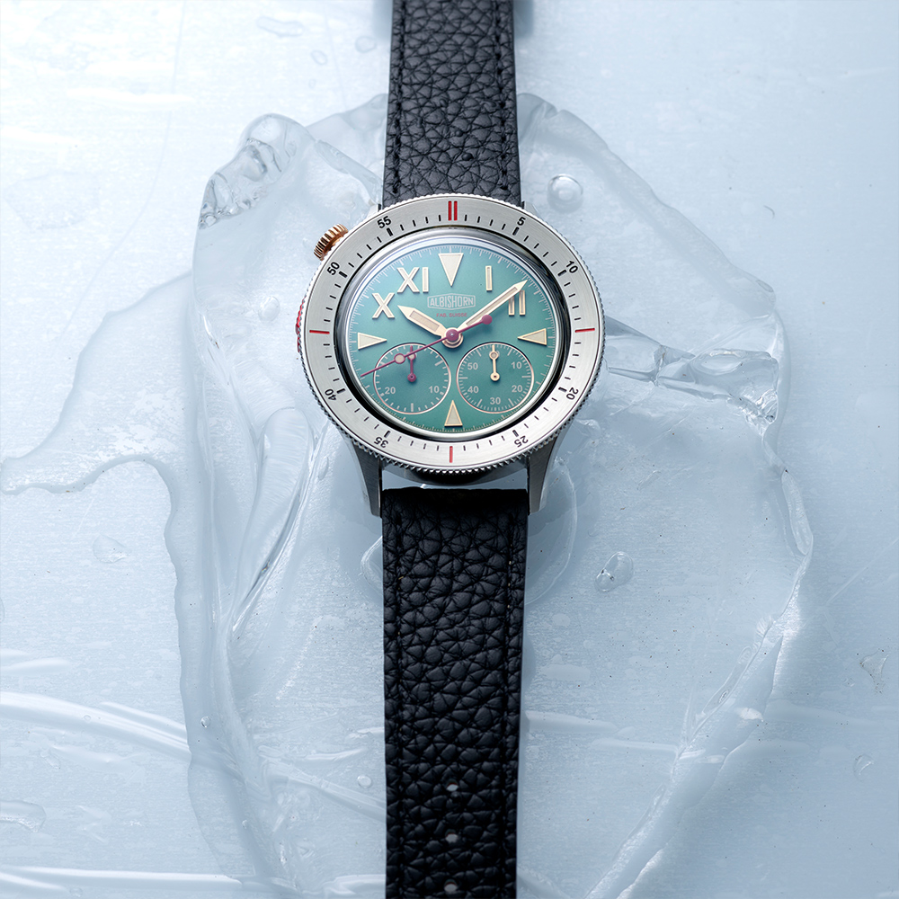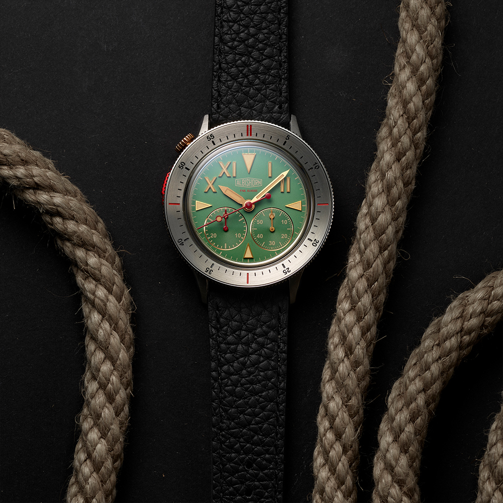 Albishorn set out to imagine the ultimate tool-watch that could have been conceived specifically for this expedition—a chronograph purpose-built to help climbers during their ascent amidst the harsh conditions of the Himalayas. By addressing the unique demands of such a monumental endeavor, this watch captures the pioneering spirit of exploration and the unparalleled utility of a wrist-worn chronograph.